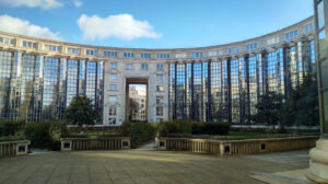 Vlak achter Gare Montparnasse in een nieuwbouwbuurtje staan twee grote appartementencomplexen van Bofill gebouwd eind jaren 80. Beiden in een halve cirkel. Met wit beton, veel glas en romeins aandoende...