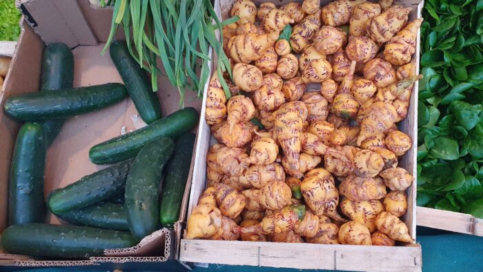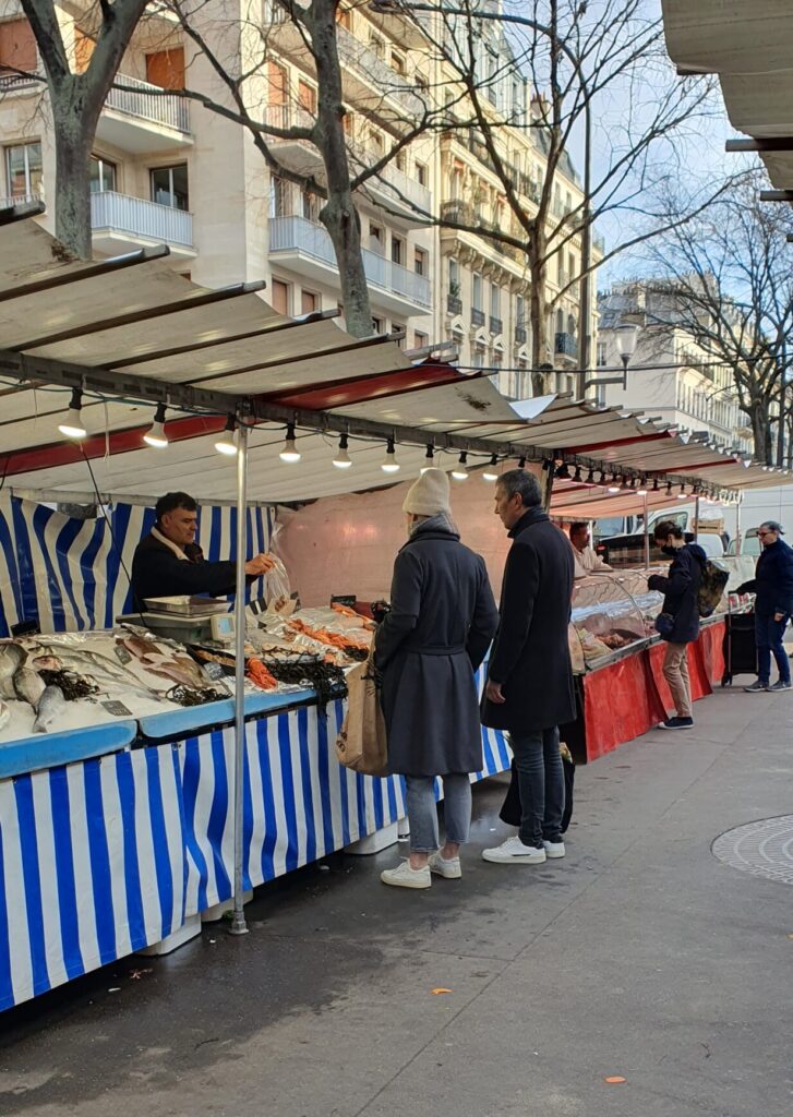 Chevre uit Cevennes, de heerlijkste bio Roquefort, vis uit Bretagne maar ook producten van de overzeese gebieden. Ook een mannetje dat van alles staat te grillen … worstjes, kip. En natuurlijk een paar bakkers met biologisch brood.